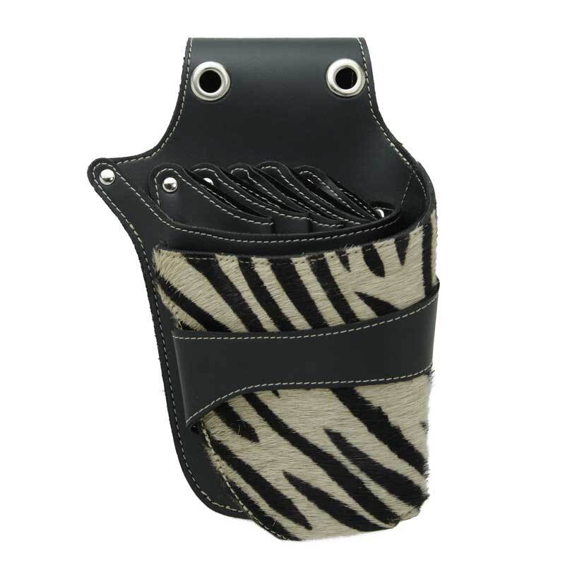 本革にハラコ素材を組み合わせた、かわいいゼブラ柄のシザーズケースです。